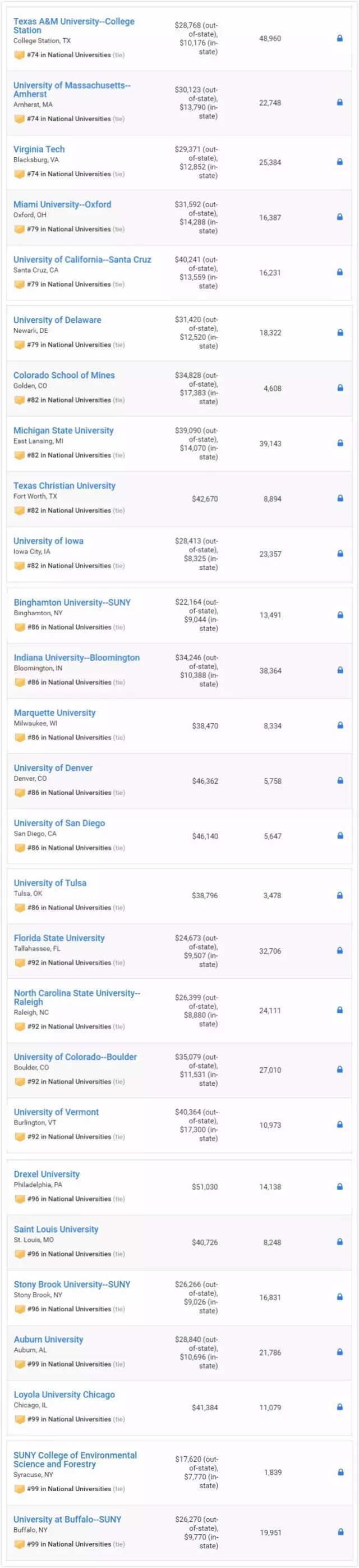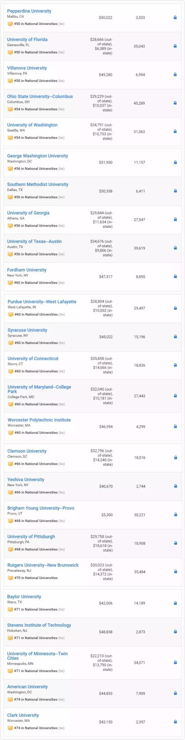最后,今年的排名中还有不少地区大学晋升为大U学校加入了排名,表现最突出的是维拉诺瓦大学,原本在北部地区性大学排名靠前的维拉诺瓦今年一举冲进前50,有点黑马的意思啊!