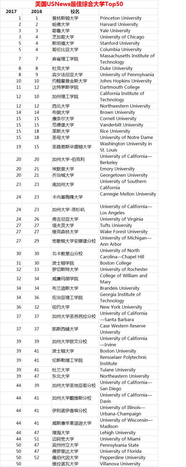 - 【美国资讯】最新!2017USNews排名新鲜出炉,速来check你的梦校位次!